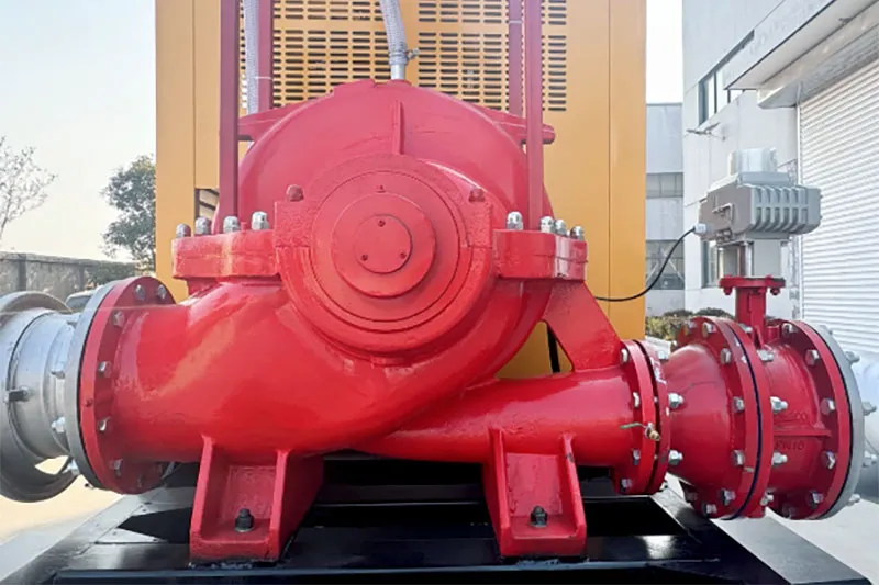 - Hệ thống mồi chân không: Máy bơm đôi hút được trang bị hệ thống hỗ trợ chân không, gồm bơm chân không và các phụ tùng đi kèm. Bơm chân không được dẫn động bởi chính động cơ diesel chính.