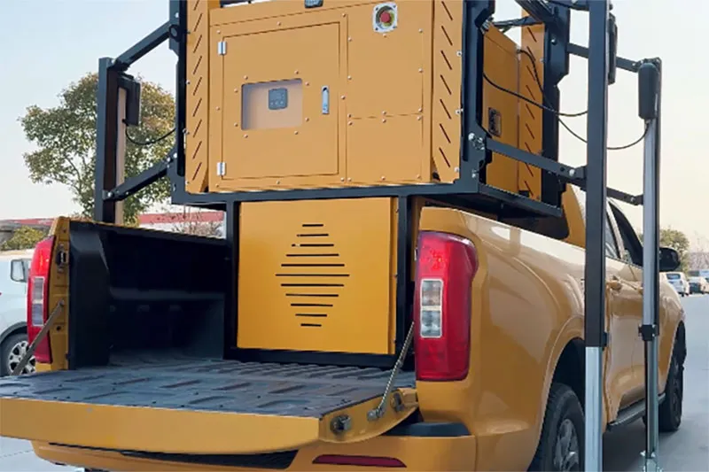 - Nâng hạ nhanh chóng: Với thiết kế tự động nâng hạ, giúp máy có thể được tải và dỡ xuống nhanh chóng, tương thích với xe bán tải hoặc xe giao hàng nhỏ, thuận tiện cho việc triển khai tức thì.